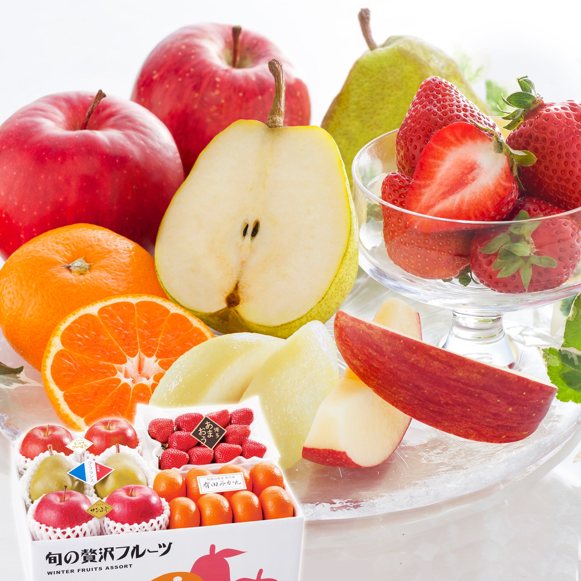 冬のフルーツ「ジョナ・ゴールド」、「サンふじりんご」、「ラ・フランス」、「あまおういちご」、「有田みかん」を5種類詰合せいたしました。旬の味覚を楽しめるフルーツギフトです。
