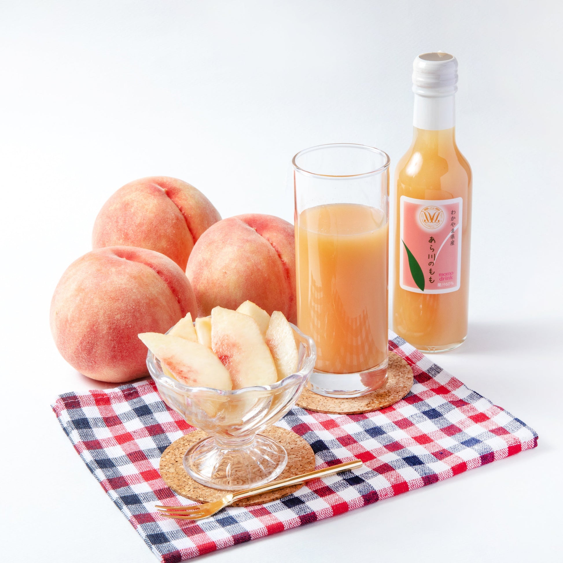紀の川市桃山町は西日本No.1の桃の産地。太陽を浴びて育った「あら川の桃」を惜しげもなく使用した果実感あふれる桃ドリンクです。